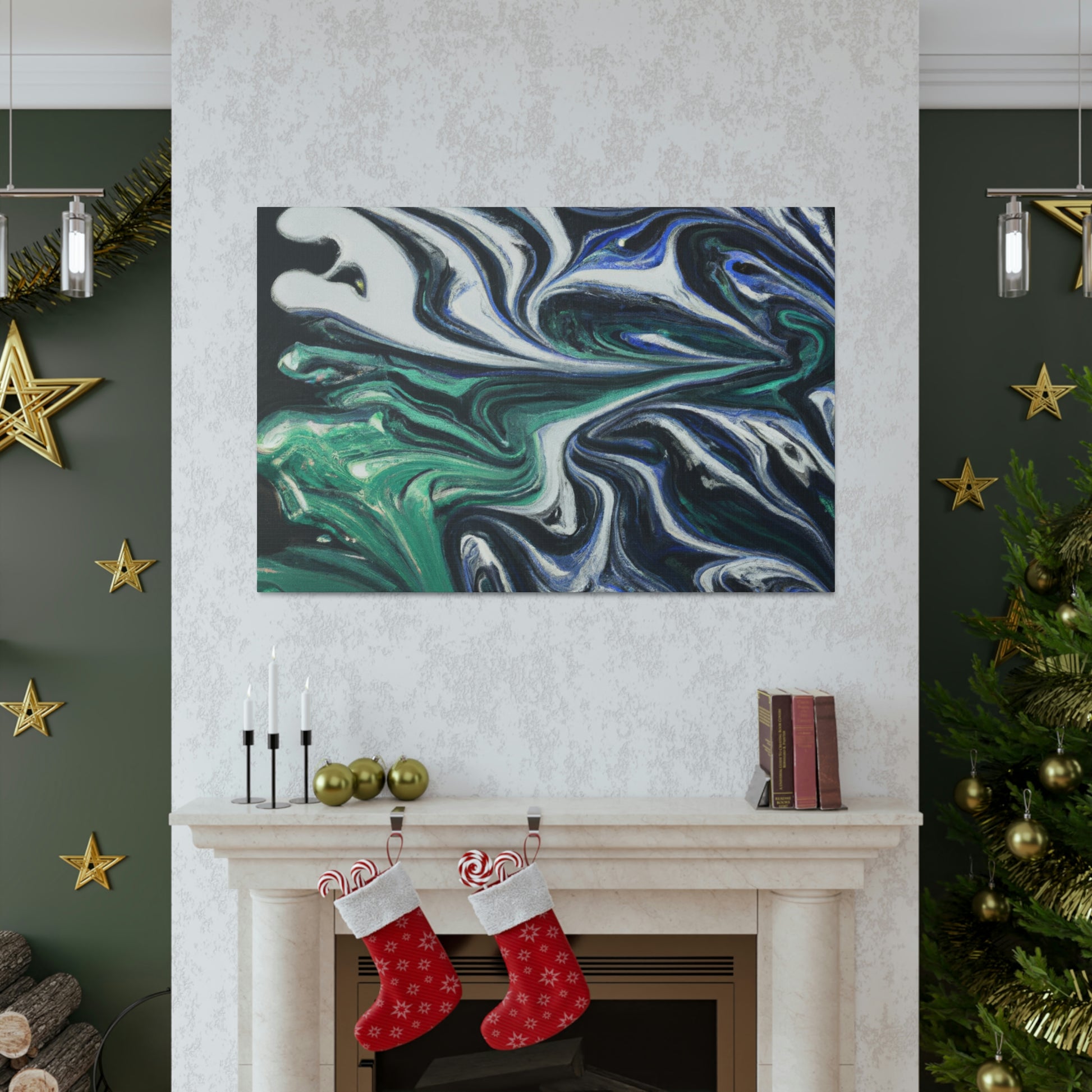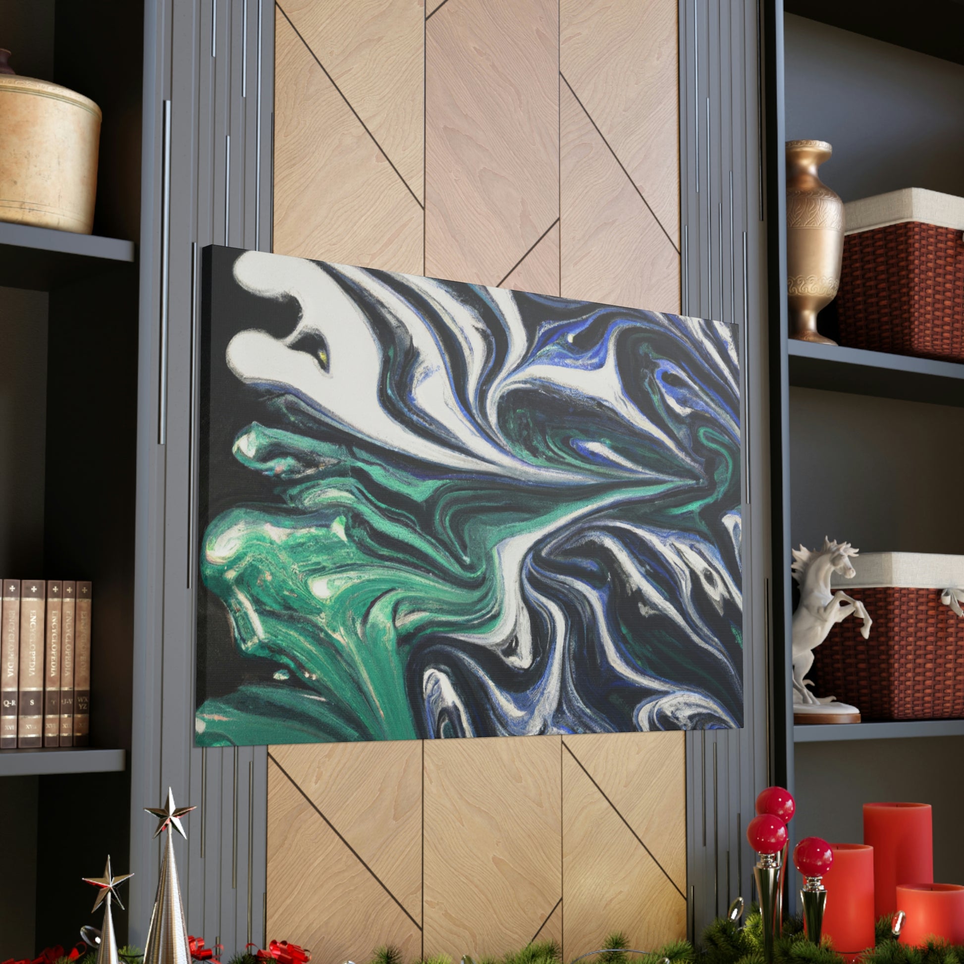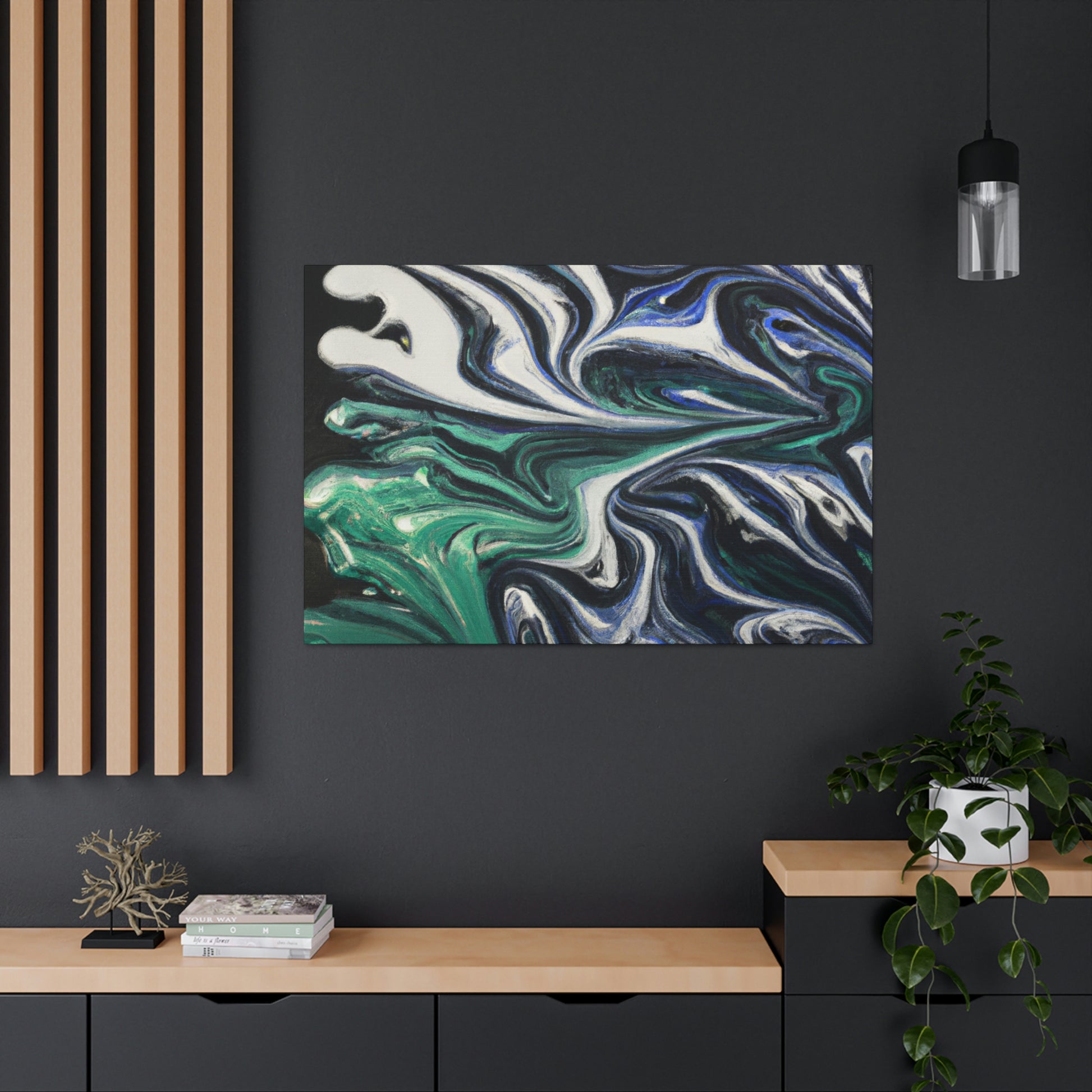 This vibrant canvas features a psychedelic array of silver, green, blue, and white on a black gradient background; together creating a breathtaking burst of color. From across the room, or up-close, it is certain to draw the eye of any art lover. Its shimmering hues shift with the light and provide a feeling of captivation every time. Hang it in any modern or bohemian room for some serious wow-factor. #psychedelic #painting #canvas #blackgradient #silver #green #blue #white #scenicview #artlover #modernroom
