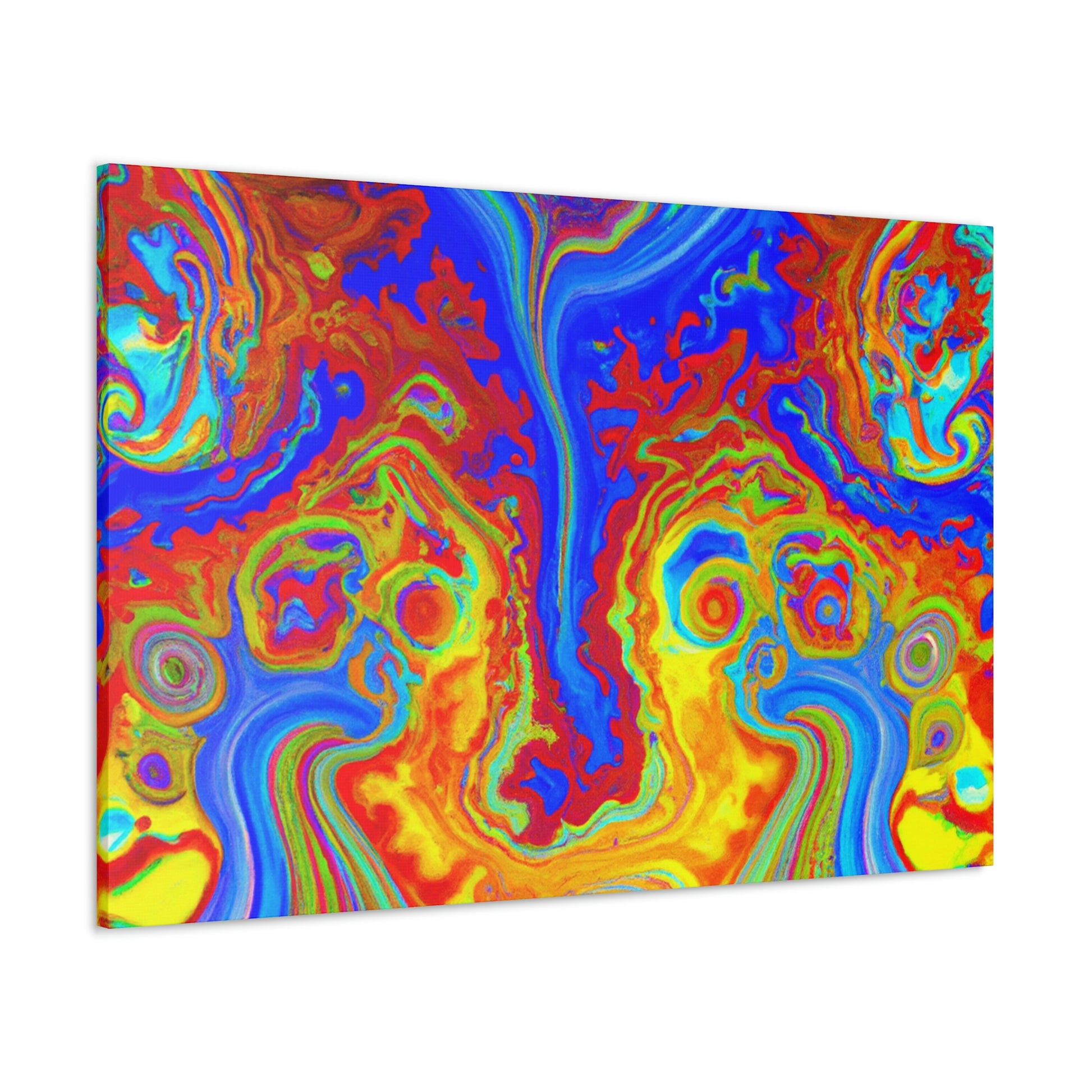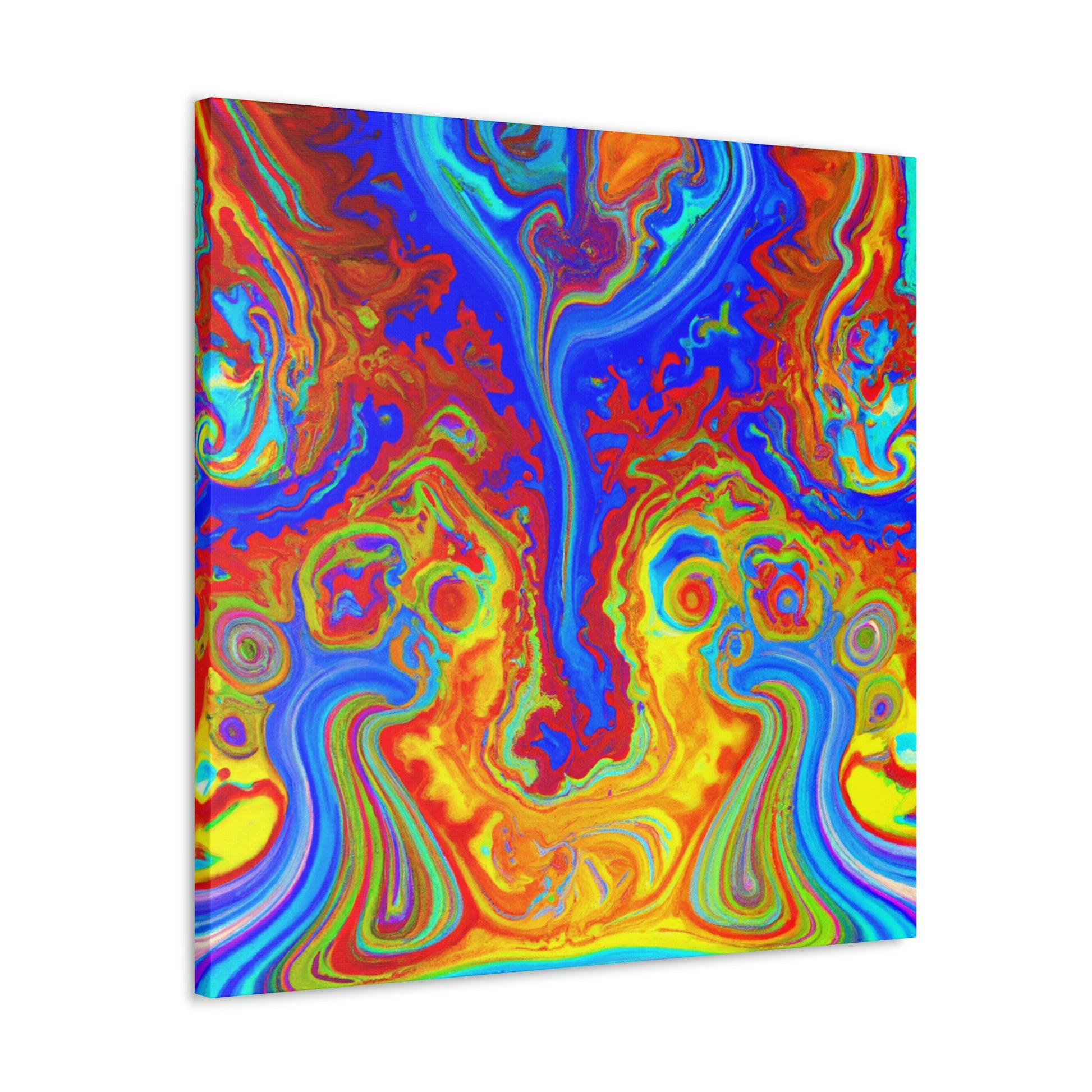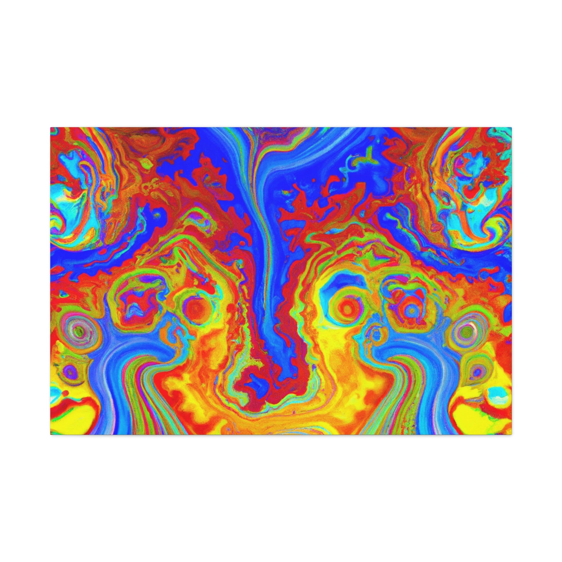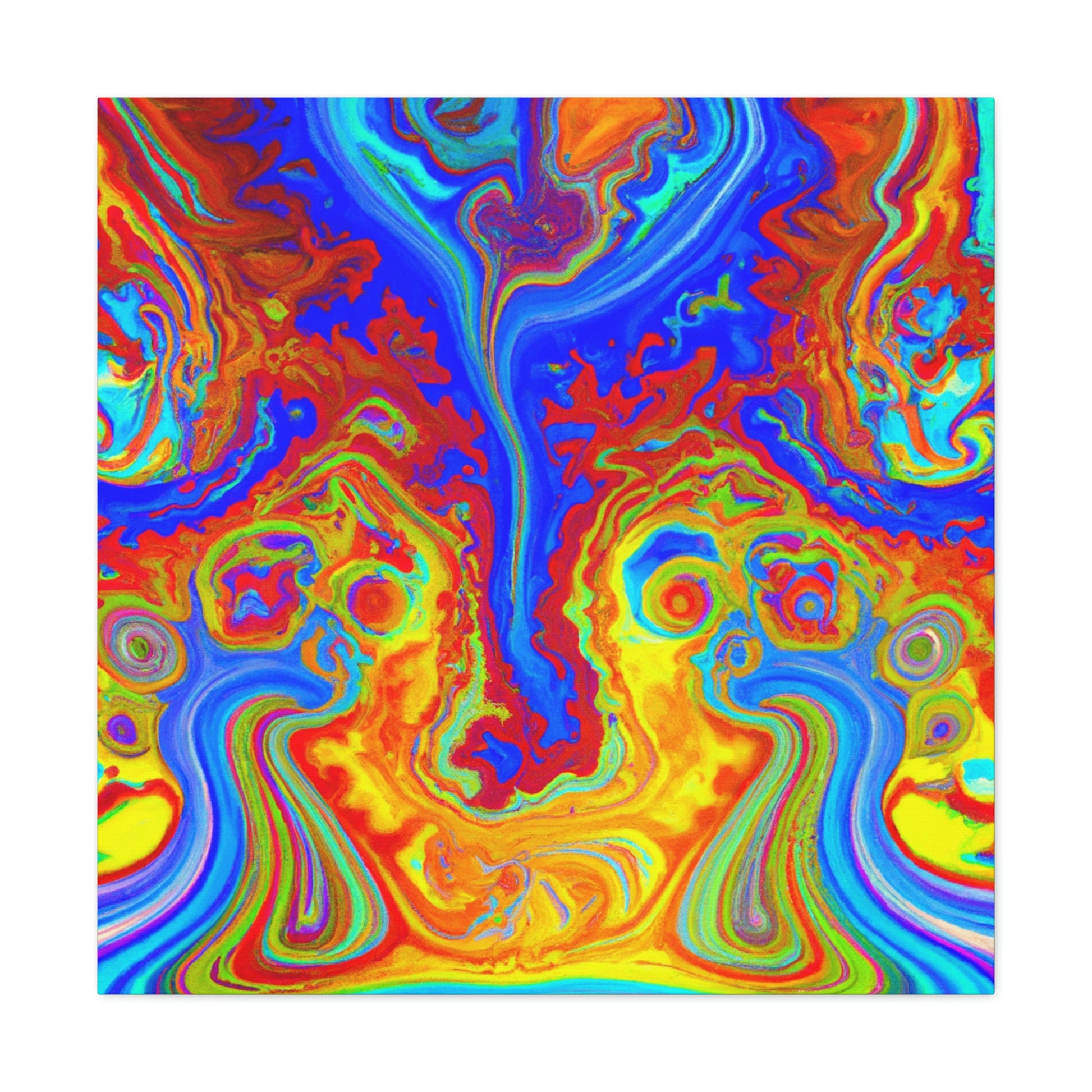 This vibrant and captivating canvas painting displays the bright colors and mesmerizing swirls of a psychedelic scene. The intense inks and blended hues combine to create a portrait reminiscent of the beauty of the natural world. Hang this painting in your home and enjoy its energy and charm each and every day. #psychedelic #painting #vibrant #captivating #hues #ink #blended #natural #beauty #charisma #energy