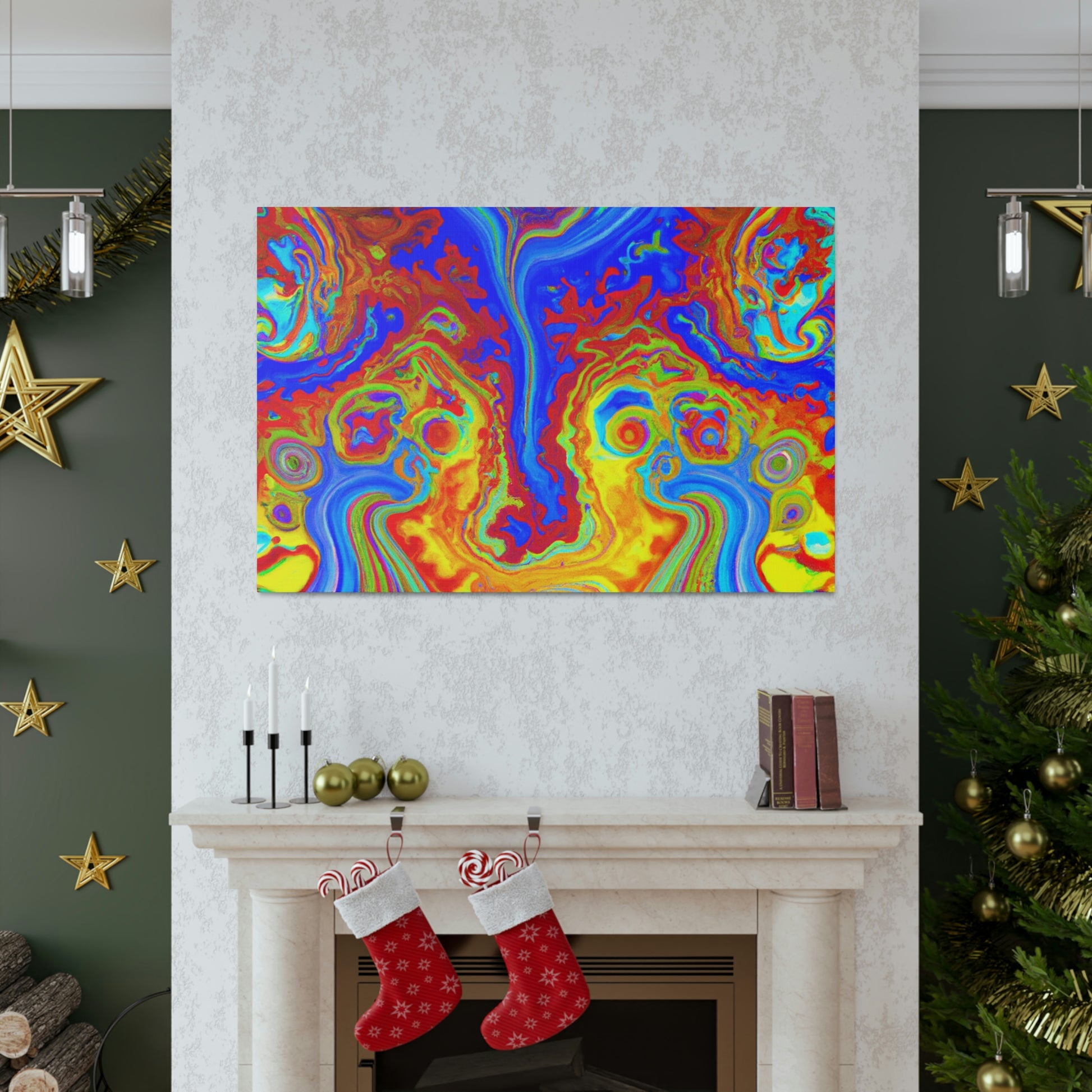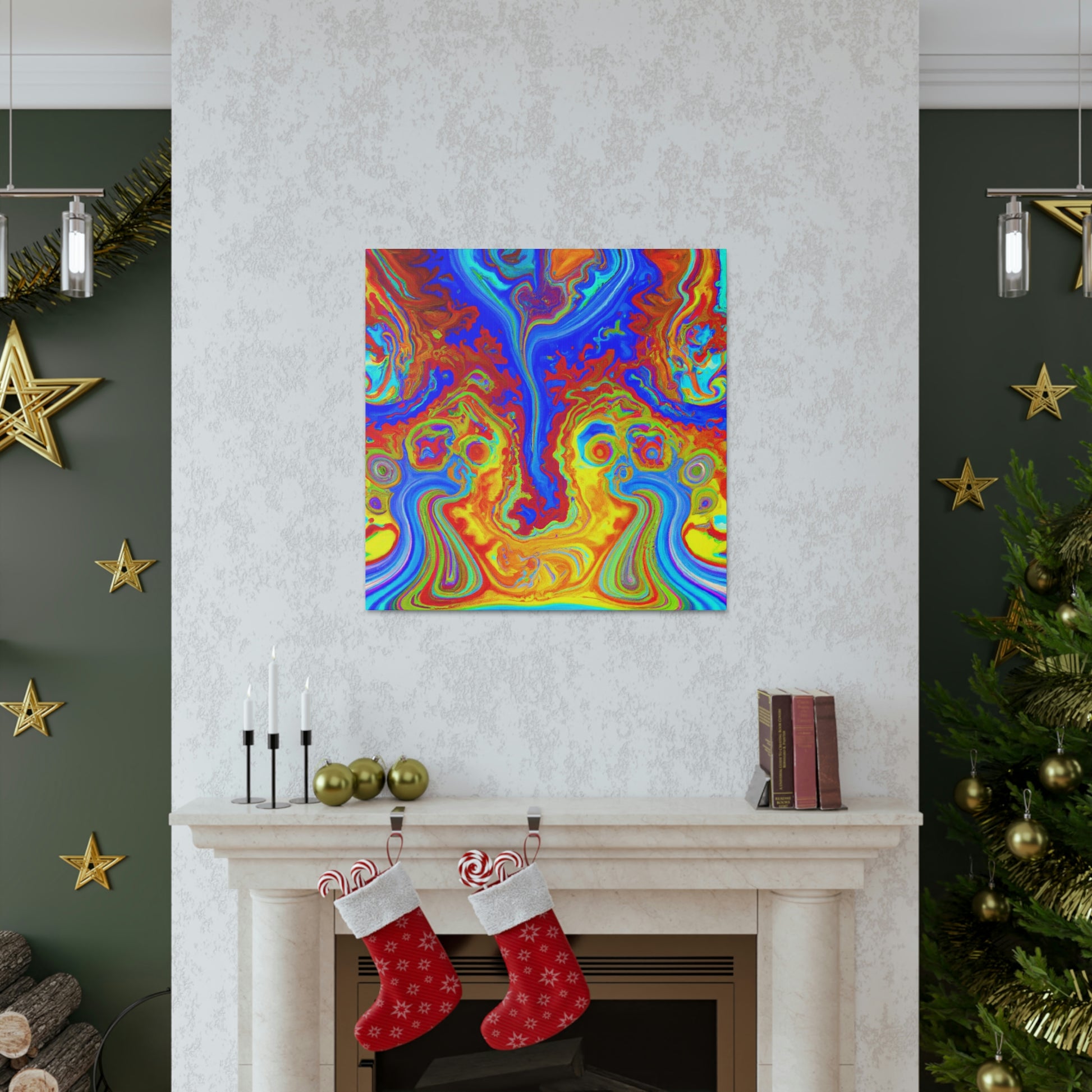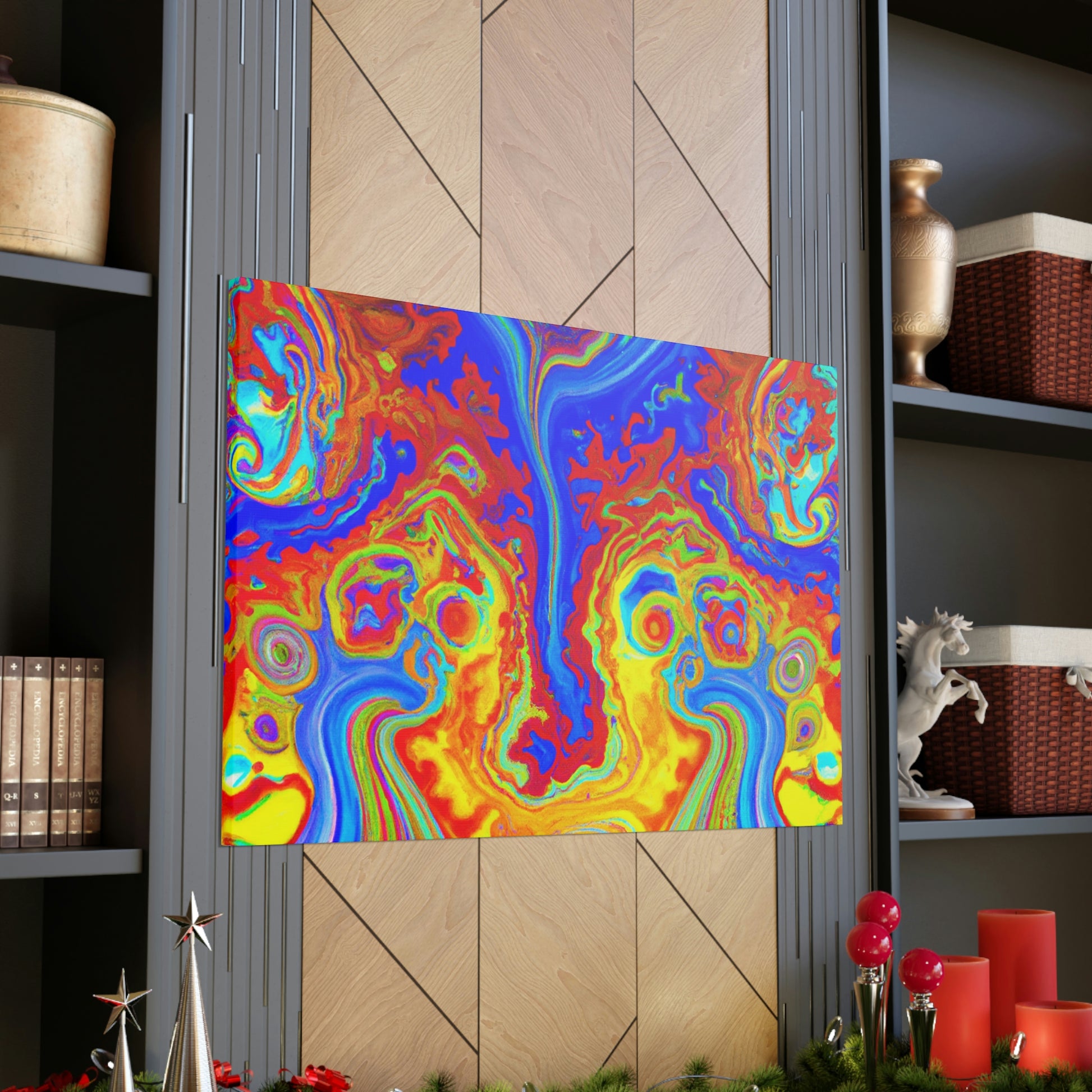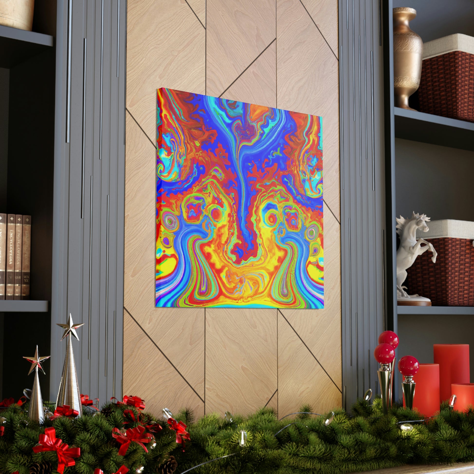 This vibrant and captivating canvas painting displays the bright colors and mesmerizing swirls of a psychedelic scene. The intense inks and blended hues combine to create a portrait reminiscent of the beauty of the natural world. Hang this painting in your home and enjoy its energy and charm each and every day. #psychedelic #painting #vibrant #captivating #hues #ink #blended #natural #beauty #charisma #energy