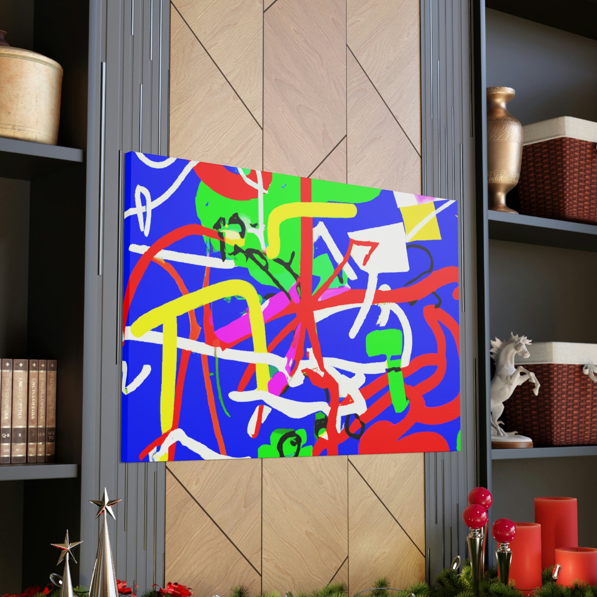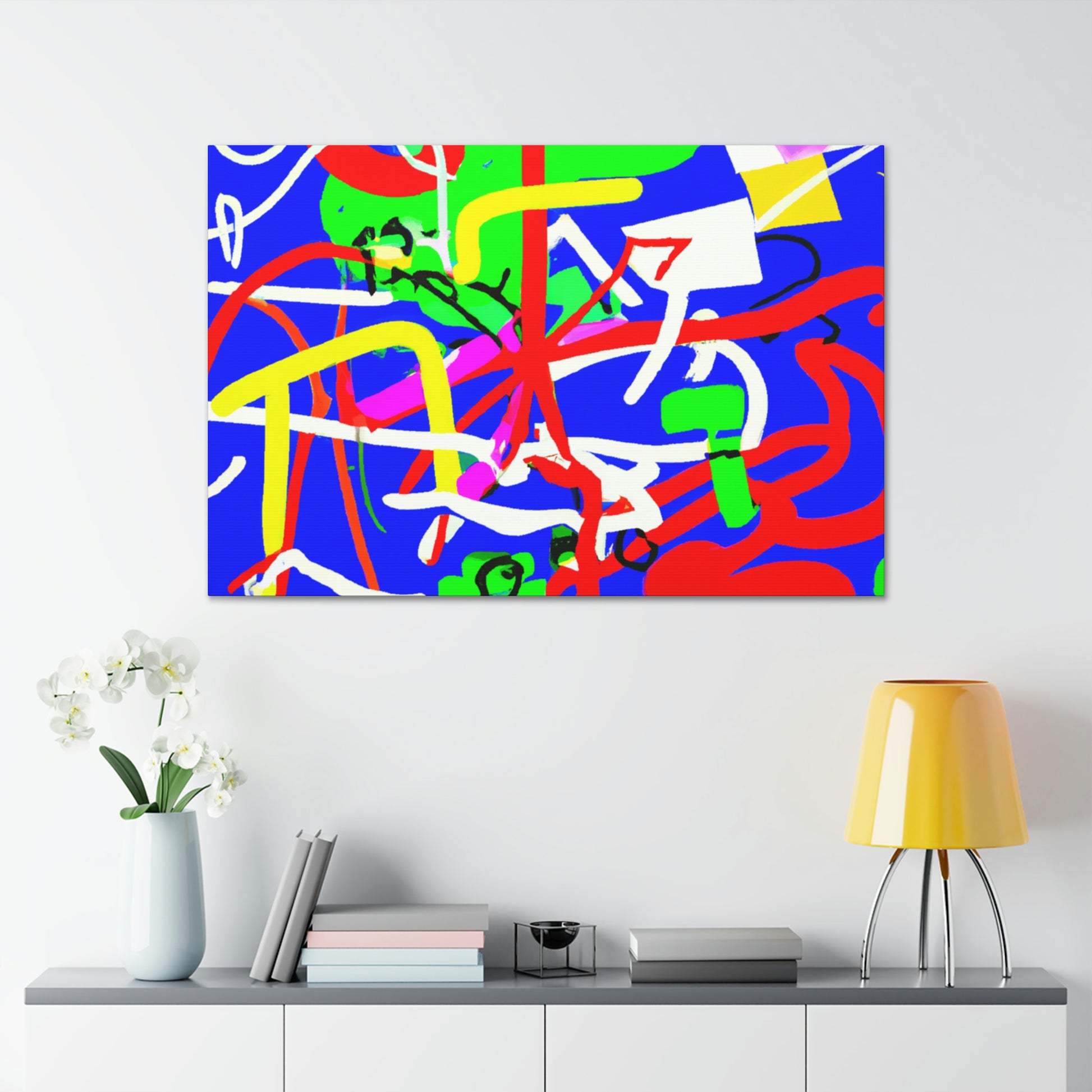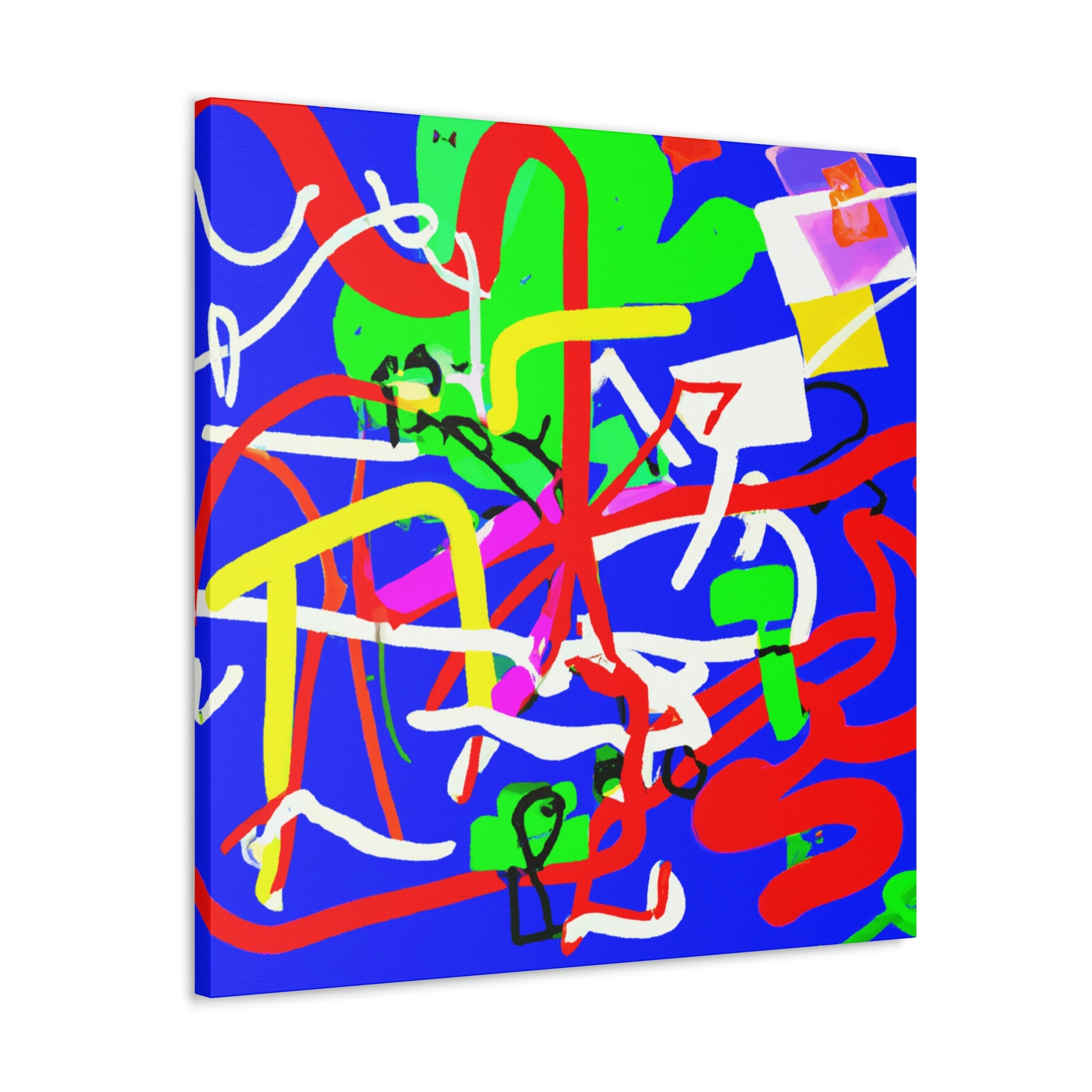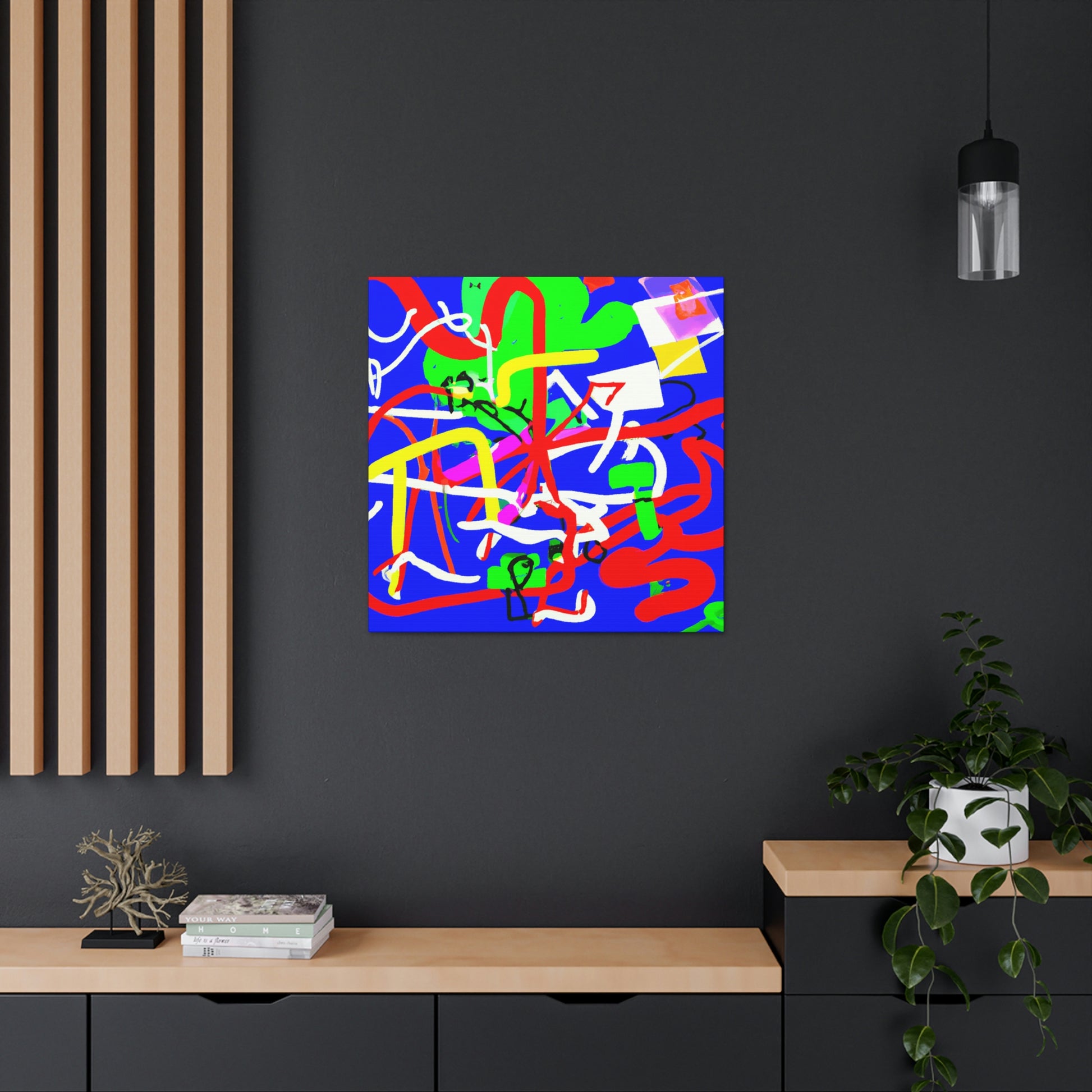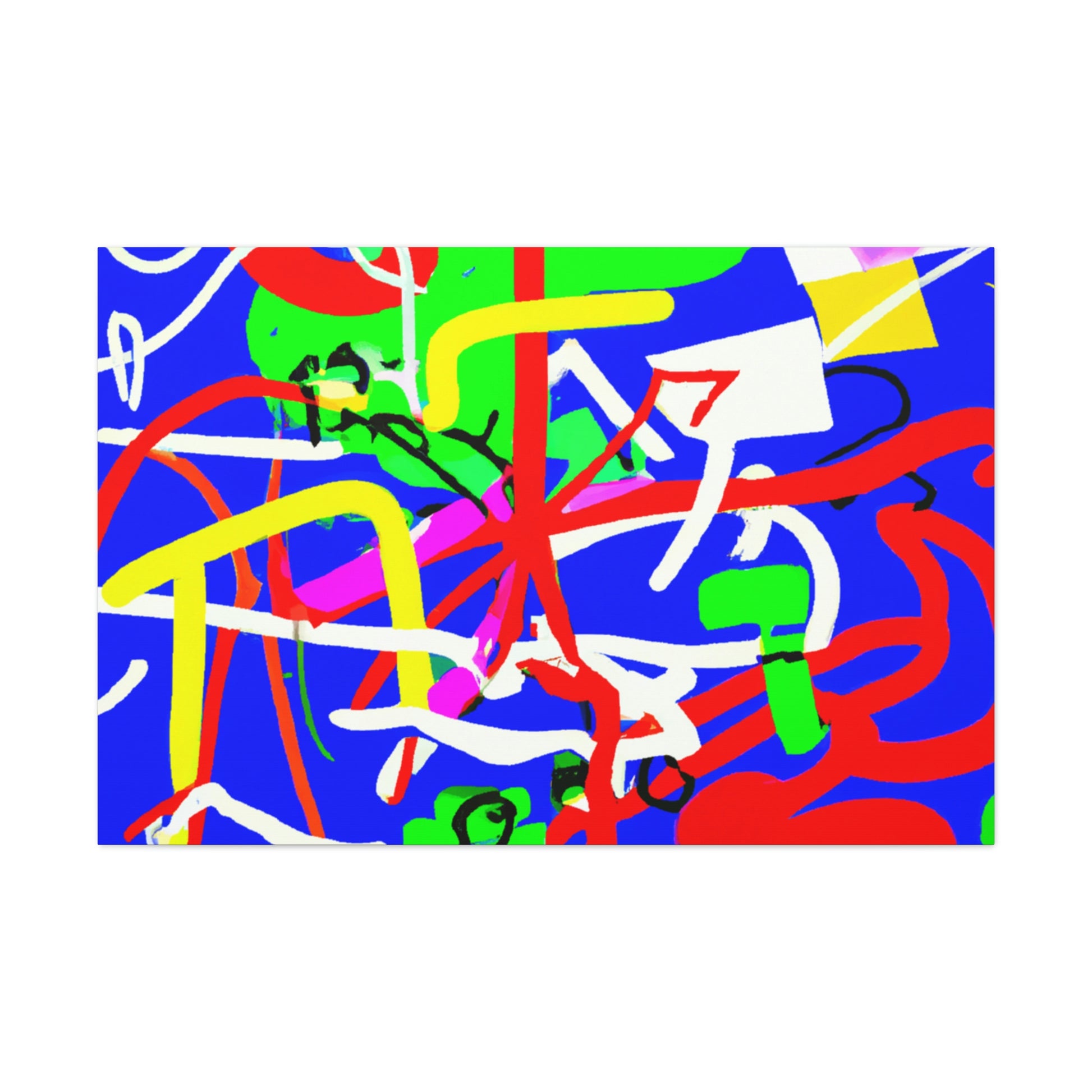 This "Crazy Modern Line and Shapes" painting will brighten up any space with its vibrant colors and bold shapes. The canvas is full of dynamic blues, greens, purples and reds, creating an eye-catching gradiant effect on a blue background. This dynamic painting would be a perfect addition to your home or office, and is sure to be the center of any room. #popofcolor #crazyart #brightart #colorexplosion #homedecor #modernart #differentartstyle #powerofcolors #popsurprise #roomtransformation #interiordesign