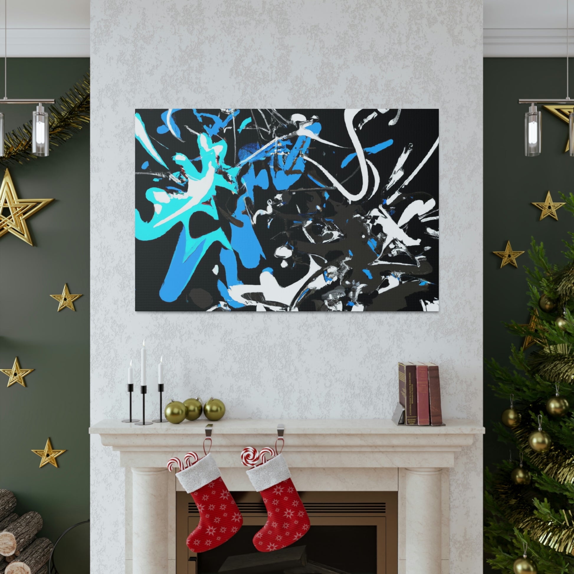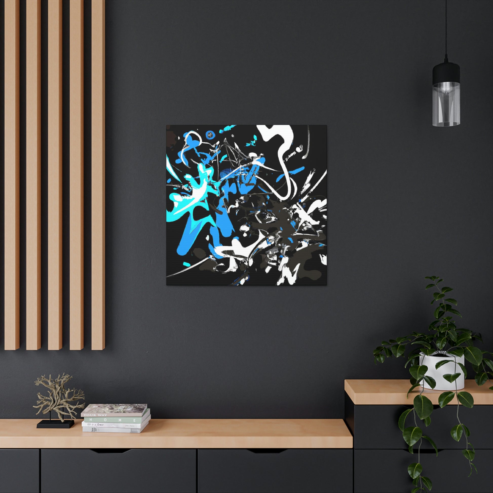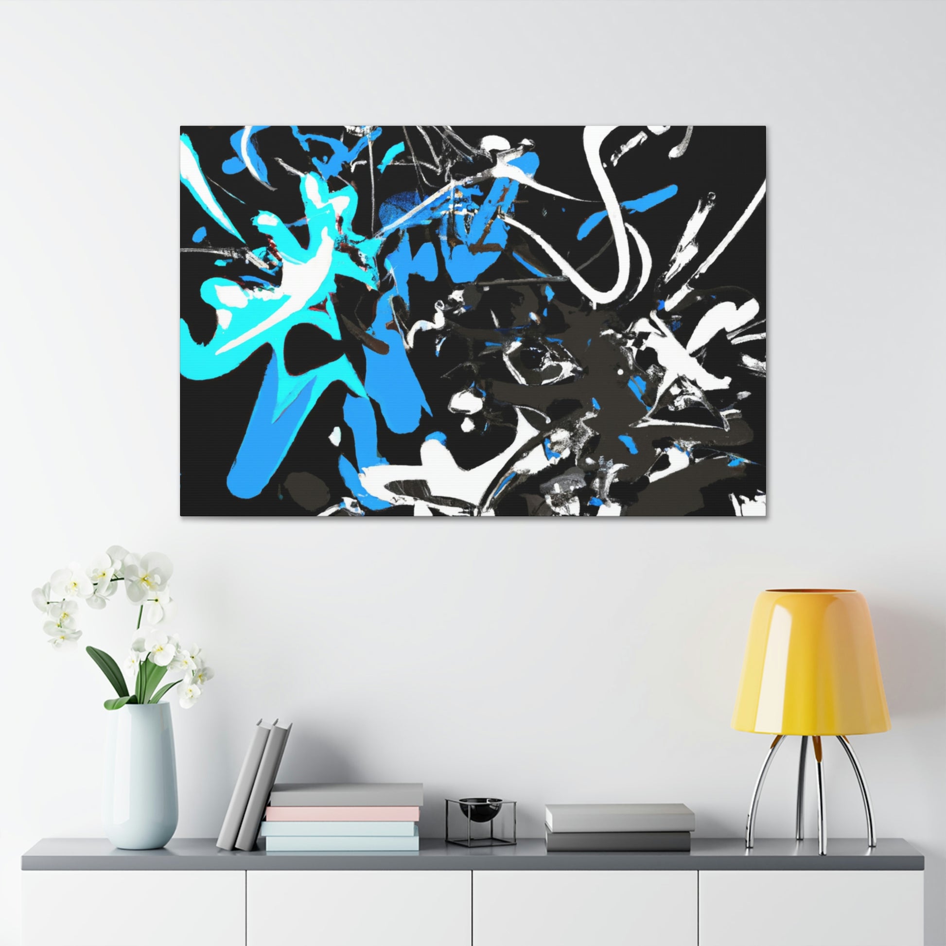 This abstract painting will bring an energetic, vibrant flair to your living space. The black background contrasts with fancy splashes of silver, blue, white, and shades of grey for a contemporary look. Even up close, individual motifs defy delineation, creating a mesmerizing effect. Hang this canvas as a statement piece in any room and enjoy its boldness and charm. #blackbackground #silver #blue #white #greyshades #abstractart #statementpiece #canvasprint #energyvibes #mesmerizingart #contemporarystyle