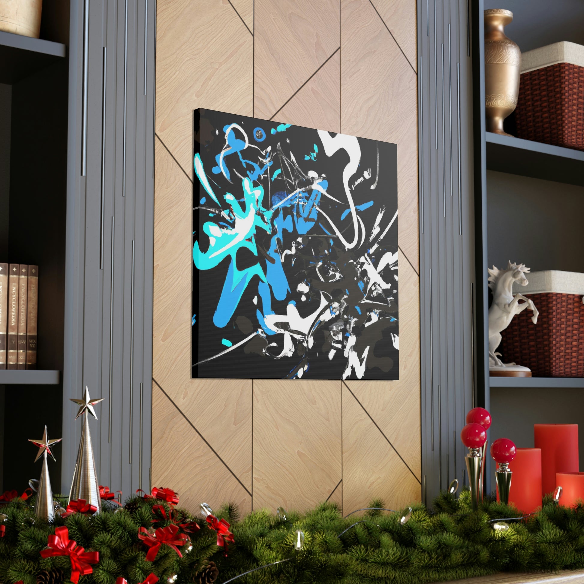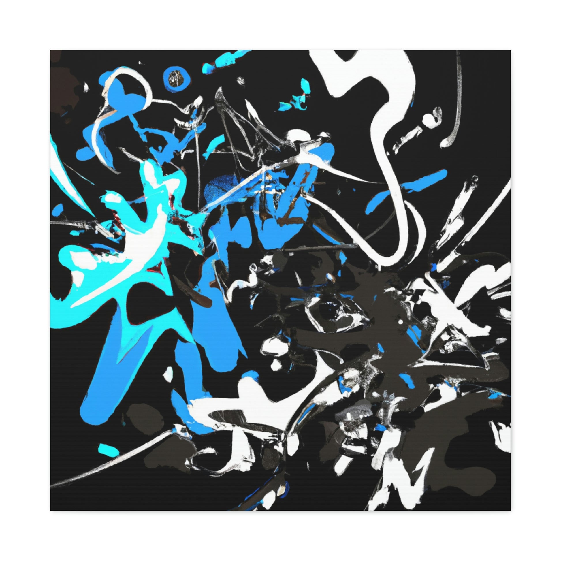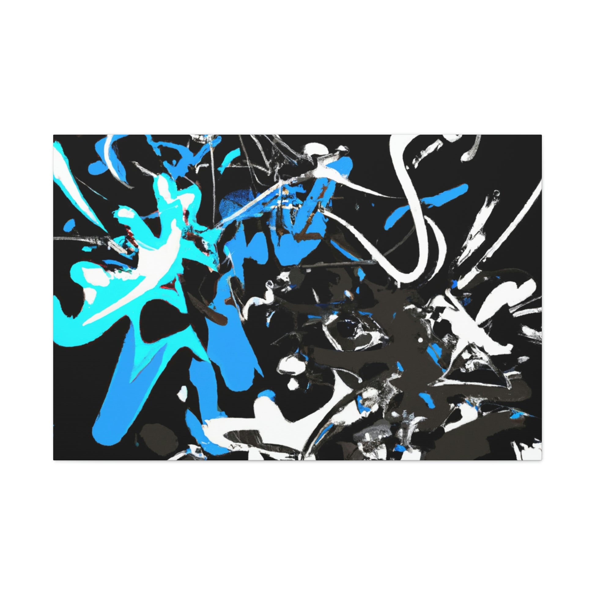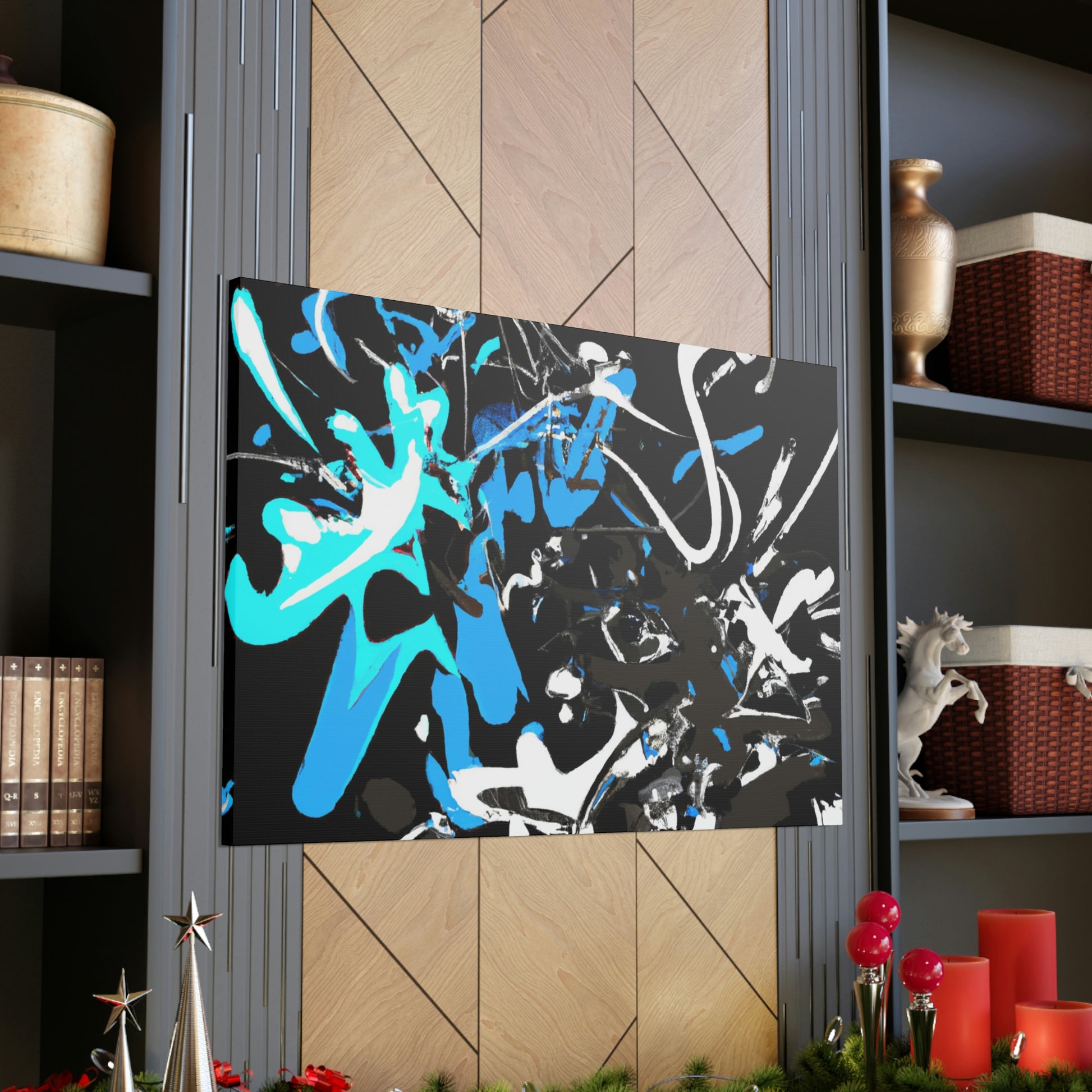 This abstract painting will bring an energetic, vibrant flair to your living space. The black background contrasts with fancy splashes of silver, blue, white, and shades of grey for a contemporary look. Even up close, individual motifs defy delineation, creating a mesmerizing effect. Hang this canvas as a statement piece in any room and enjoy its boldness and charm. #blackbackground #silver #blue #white #greyshades #abstractart #statementpiece #canvasprint #energyvibes #mesmerizingart #contemporarystyle