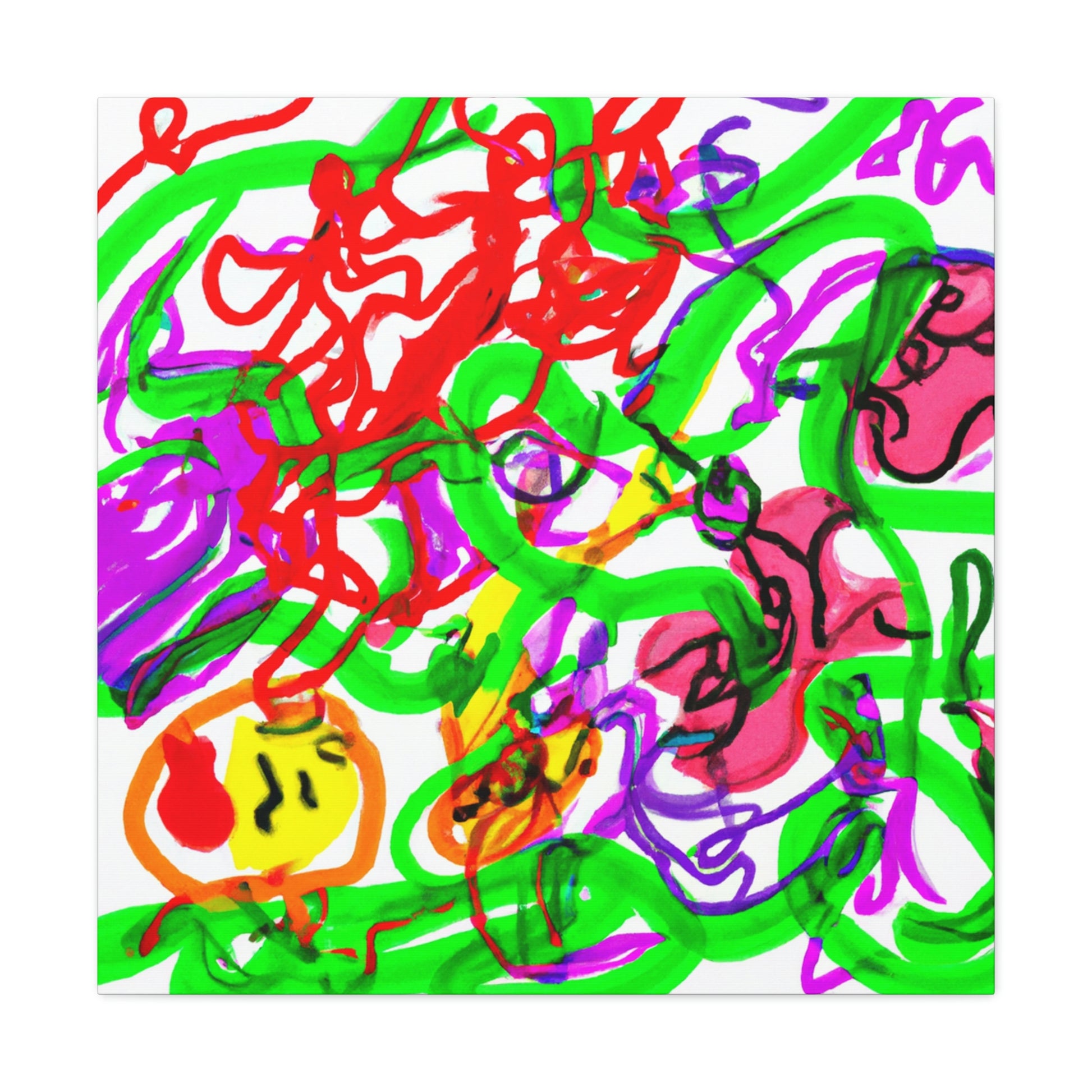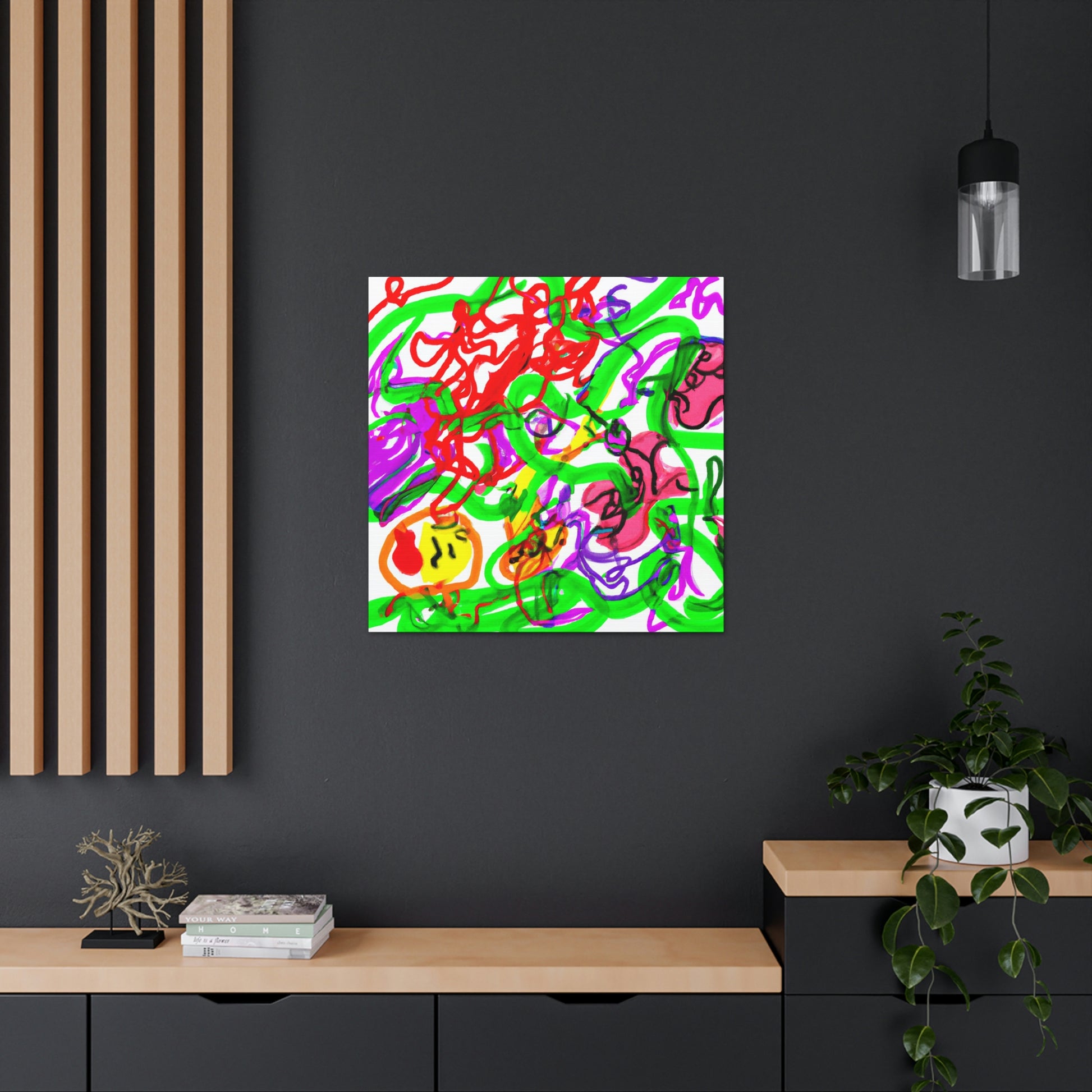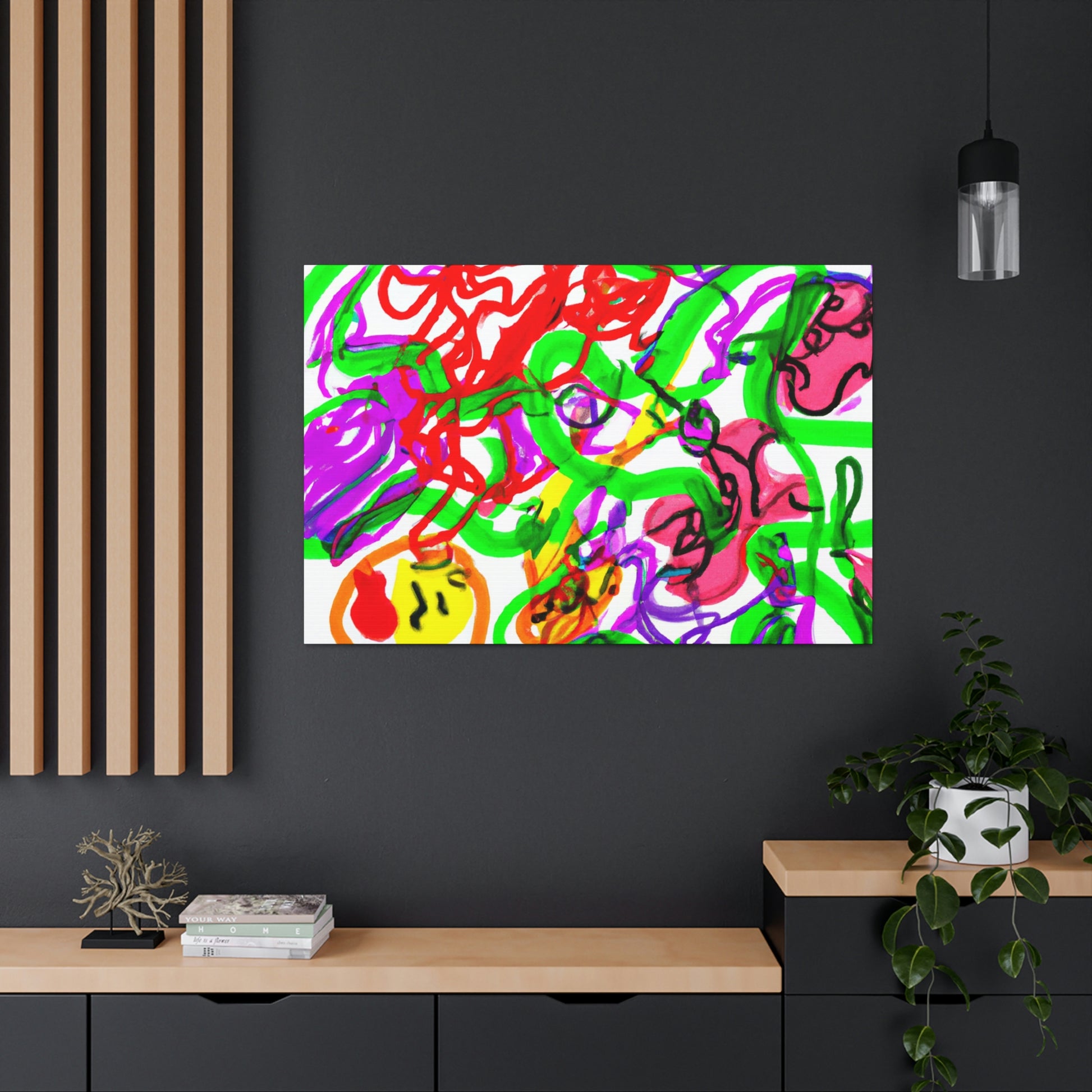 This canvas painting can give your room a crazy, modern vibe! The colors are vibrant and eye-catching - purple, red and green blend together seamlessly to create a mesmerizing work of art. The artwork has been hand painted and thanks to the canvas material, you can hang the canvas up with ease. Add a special touch to your home with this unique and beautiful canvas. #CanvasPainting #ModernDecor #ColorfulArt #Purple #Red #Green #Vibrant #UniquePiece #MesmerizingArt #HomeDecor #HandPainted