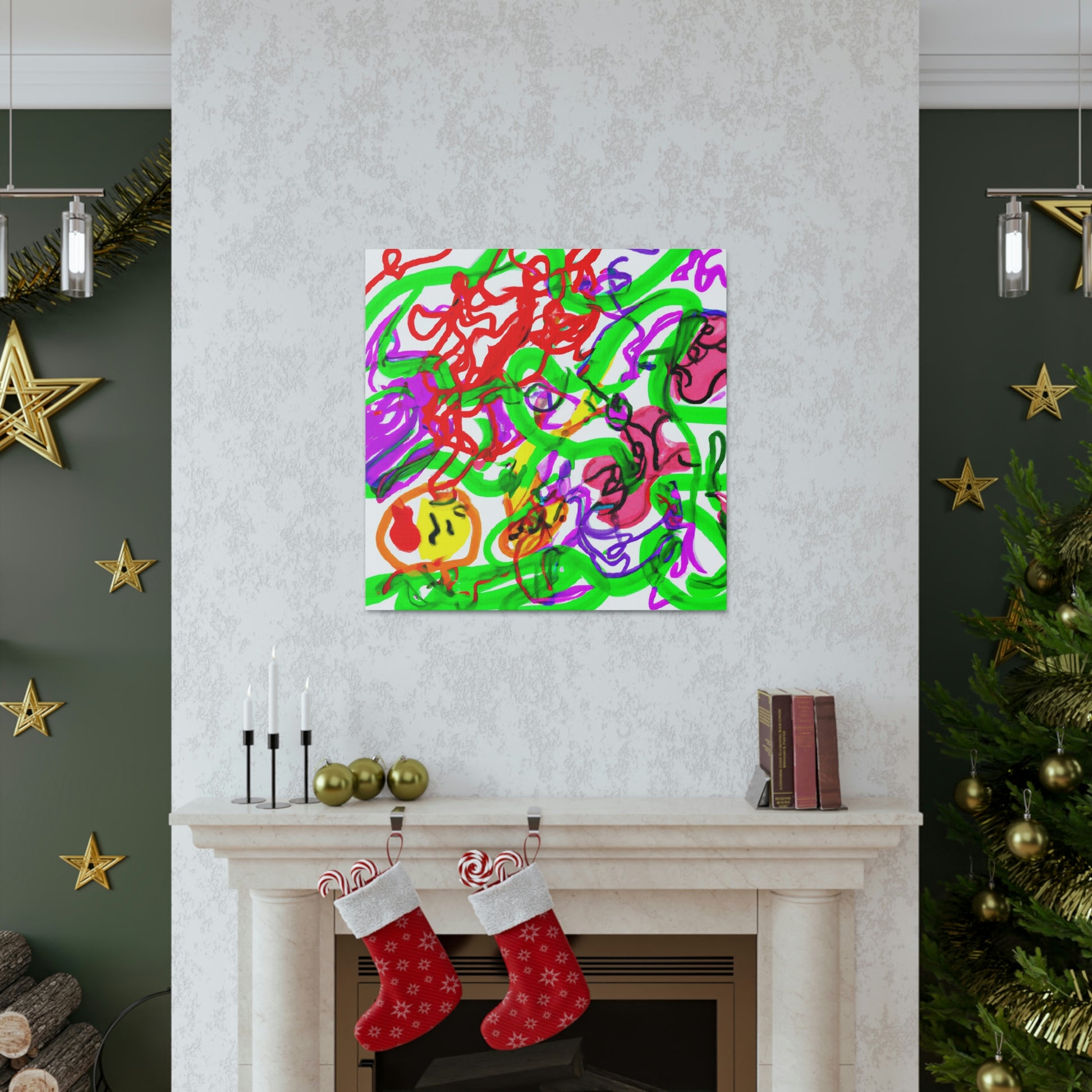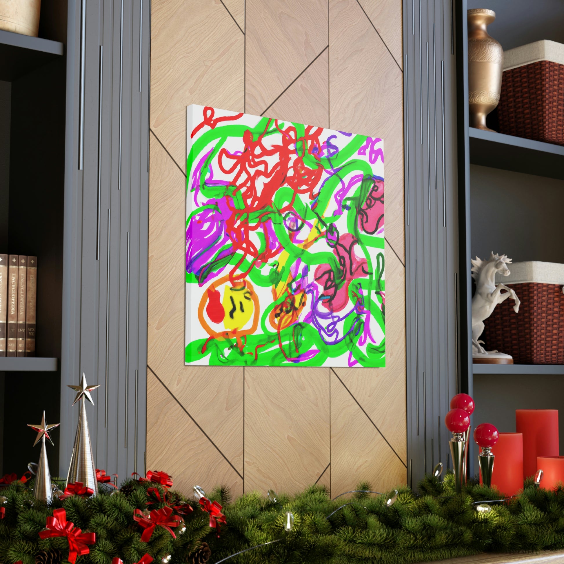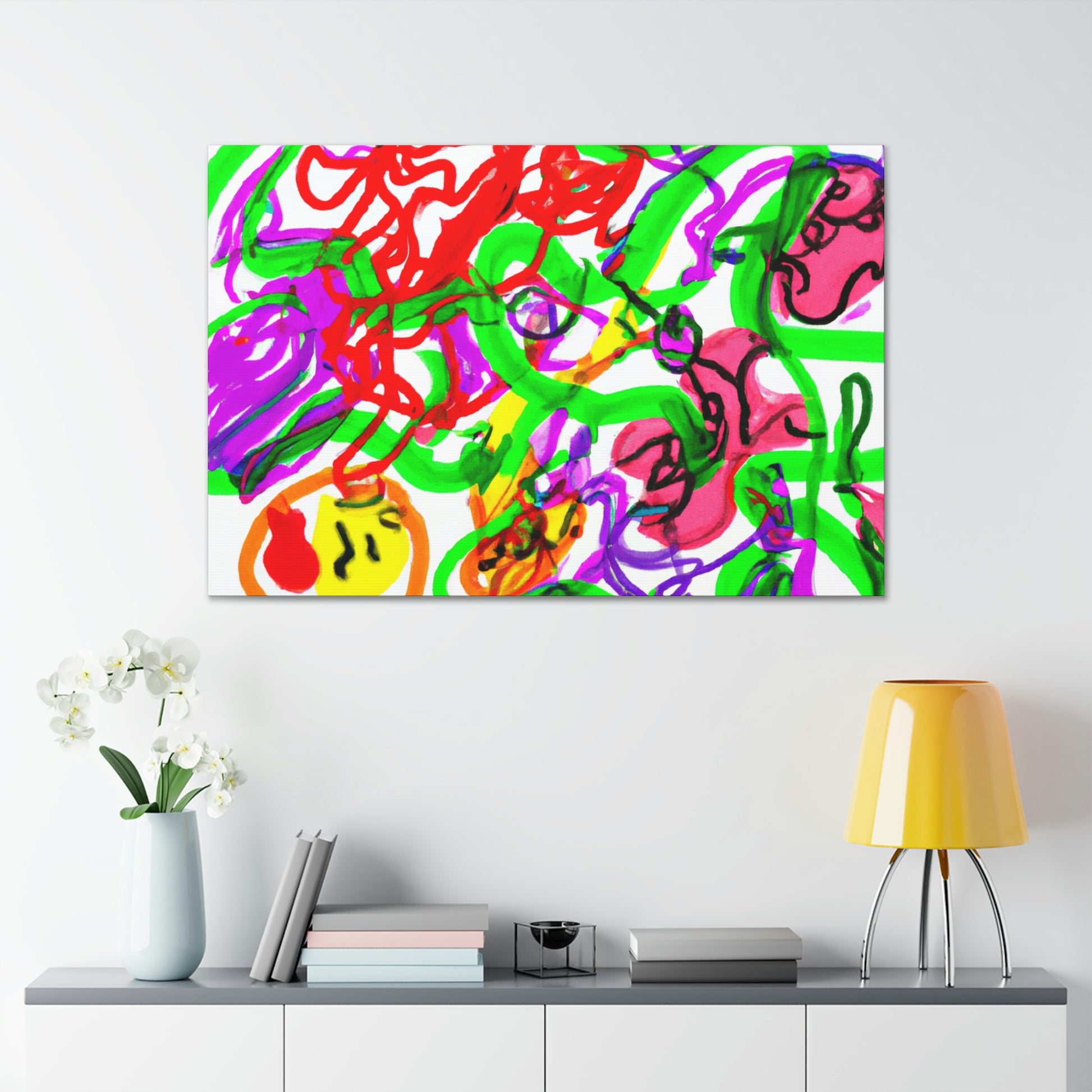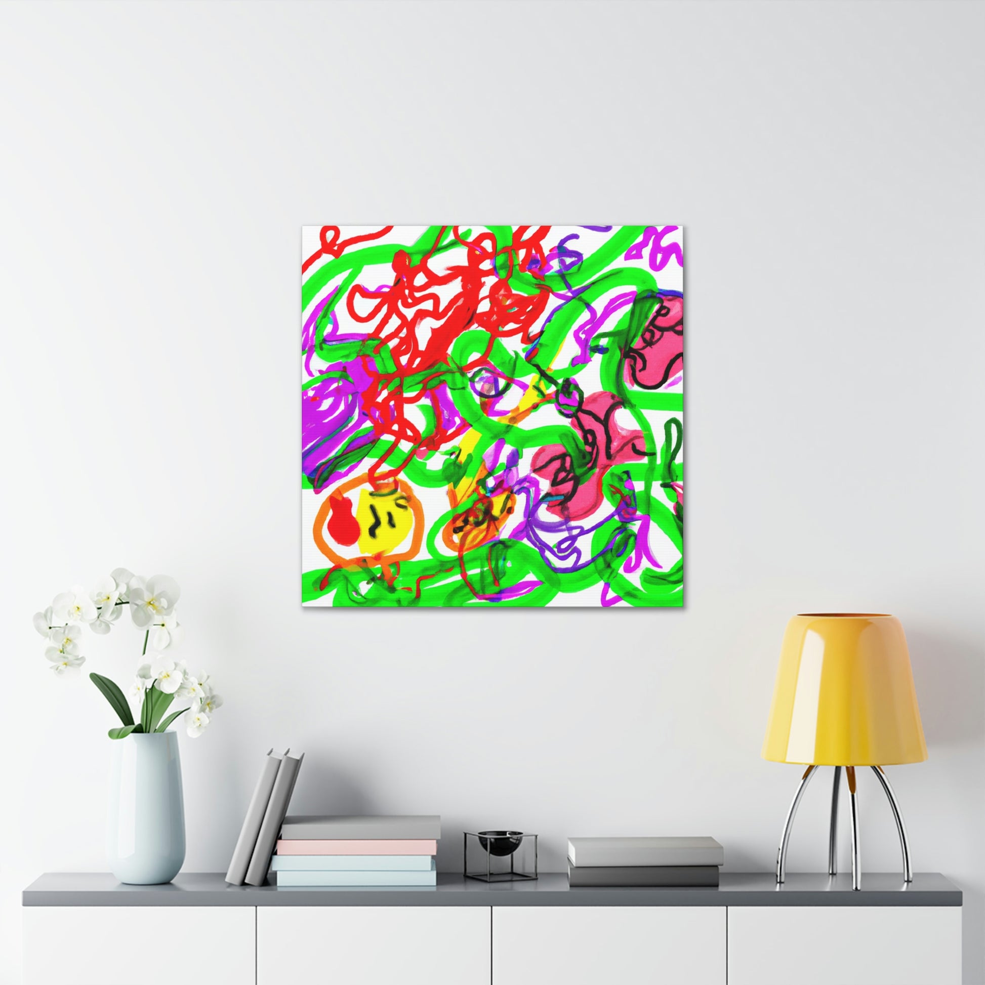This canvas painting can give your room a crazy, modern vibe! The colors are vibrant and eye-catching - purple, red and green blend together seamlessly to create a mesmerizing work of art. The artwork has been hand painted and thanks to the canvas material, you can hang the canvas up with ease. Add a special touch to your home with this unique and beautiful canvas. #CanvasPainting #ModernDecor #ColorfulArt #Purple #Red #Green #Vibrant #UniquePiece #MesmerizingArt #HomeDecor #HandPainted