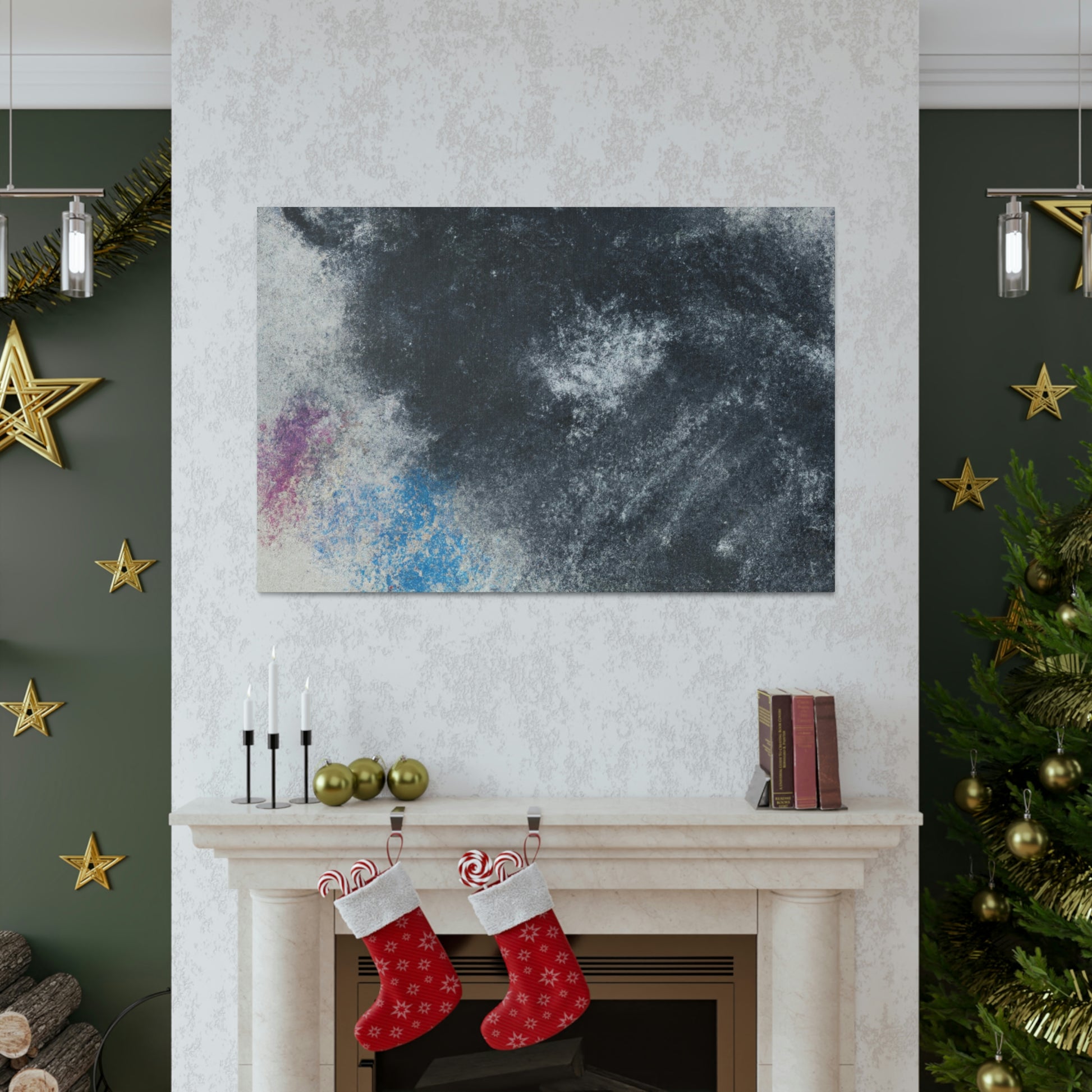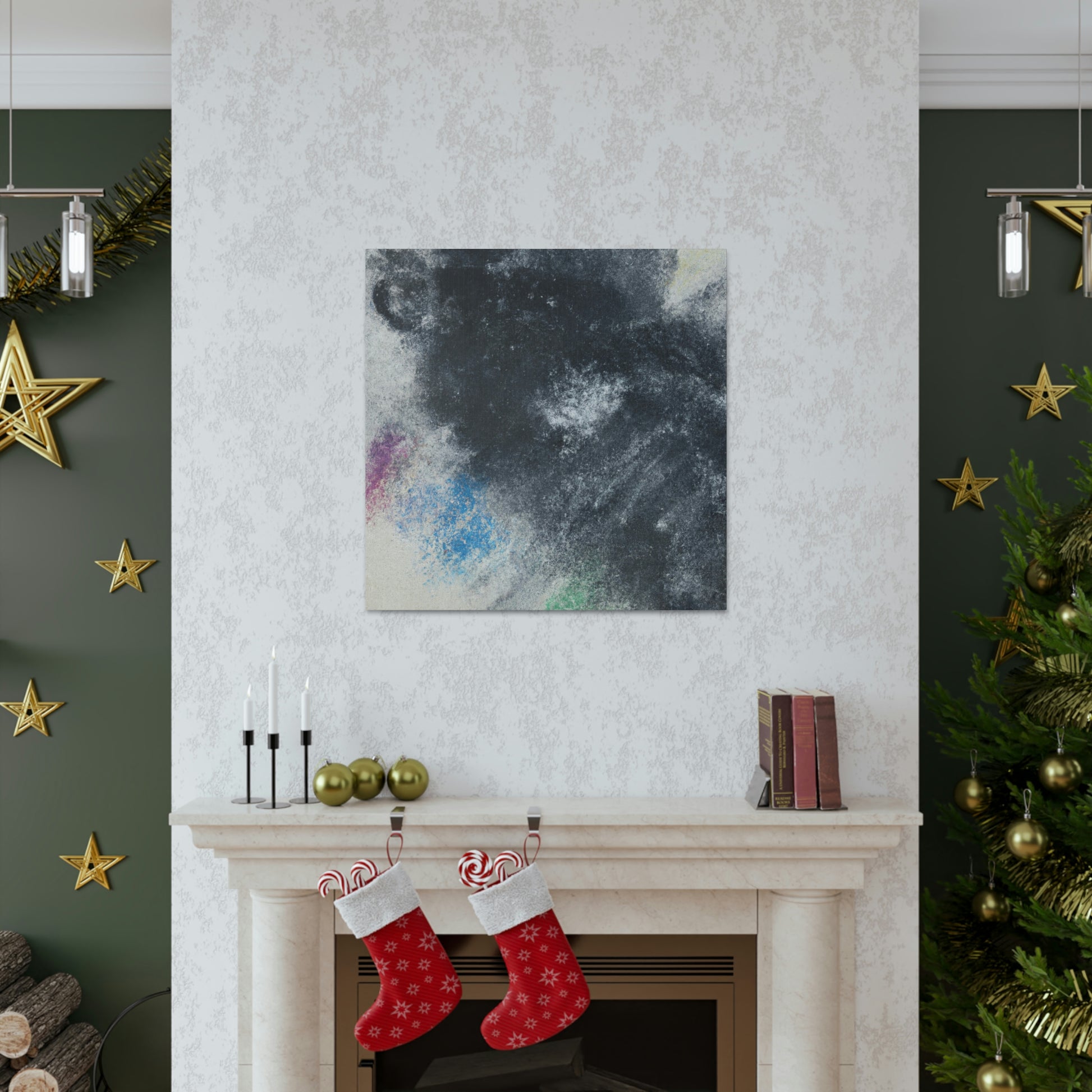 This canvas of charcoal painting brings a modern feel to your home. Featuring dark gray and black tones with colorful accents, you can show off your style and your modern art appreciation. With this painting, any room of your home is sure to look like you stepped out of a gallery. #charcoalpainting #modernart #homedecor #art #charcoal #gray #black #colorsplash #painting #artwork #canvas #wallart