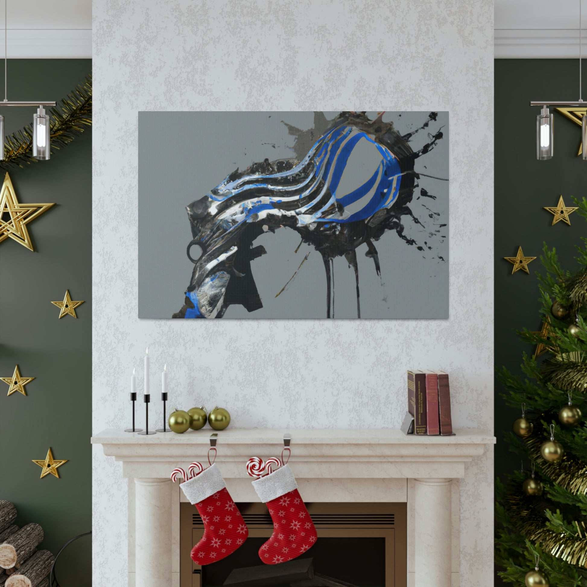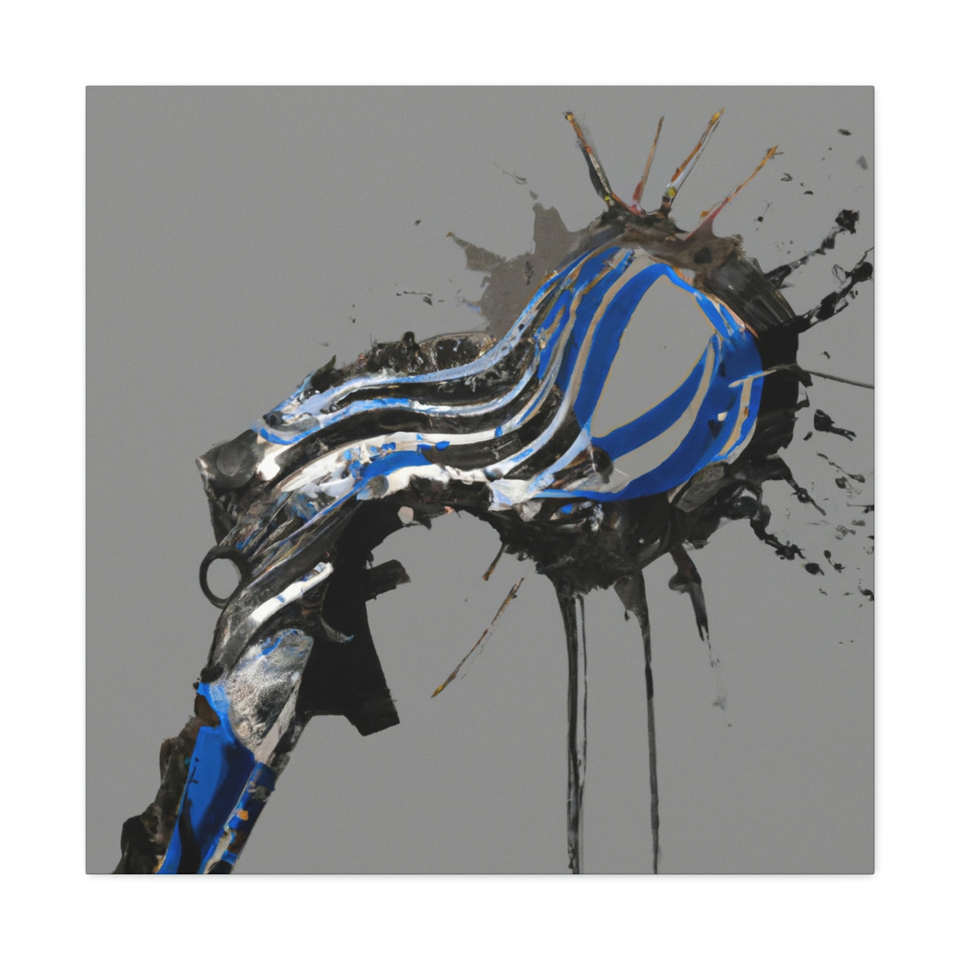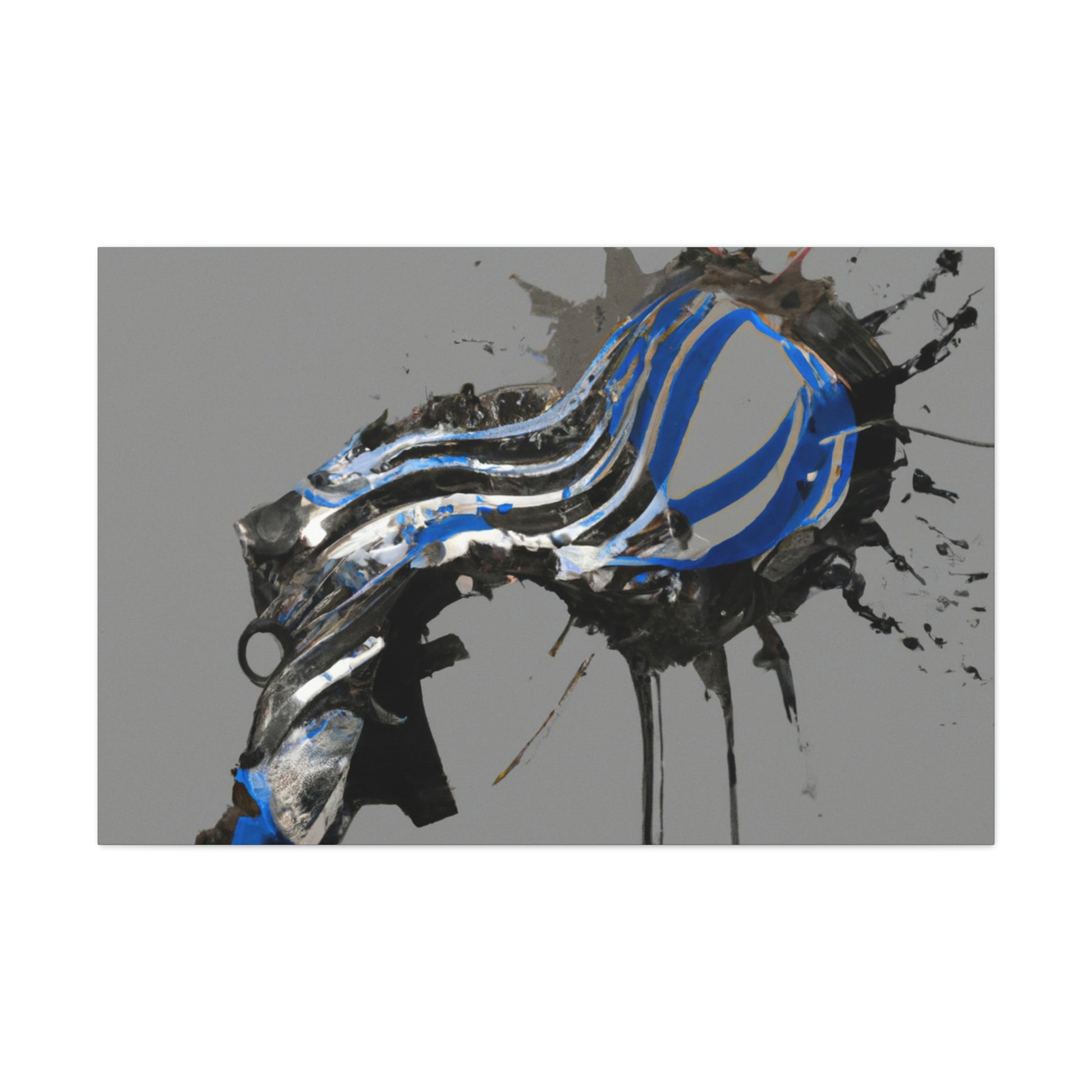 This remarkable painting, a modern masterpiece, captures the energy and excitement of a paintball game with its bold, yet sleek look. Created with shades of blue, black, and silver on a silvery-grey background, it's sure to captivate viewers. Its unique texture adds an element of surprise, yielding an edgy and funky style. Perfect for someone who loves expression and a bit of whimsical chaos. #modernart #expression #paintball #canvas #greybackground #blueblackandsilver #artisticenergy #boldlook #captivatingviewers #texturedsurprise #whimsicalchaos