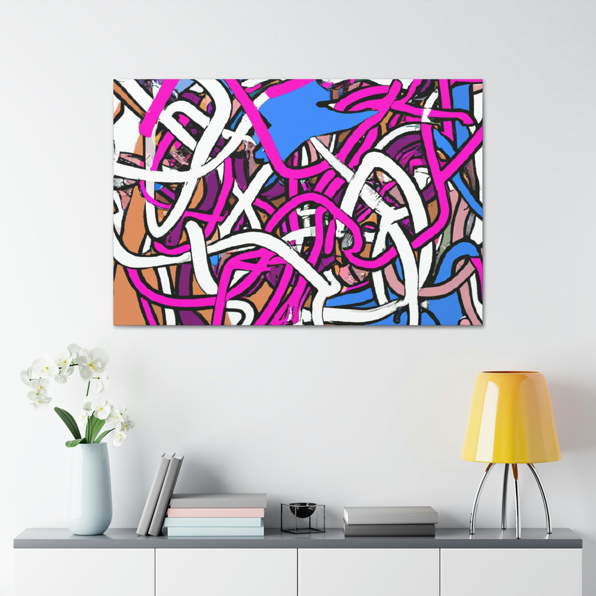 This Crazy modern lines painting is made on large canvases and filled with chaotic color combinations. Combined with a unique blend of texture and brushwork, these pieces provide an upbeat and refreshingly abstract aesthetic to any home decor. Creating a stunning visual statement, this bold artwork is sure to have an impact on any space. #modernart #abstractart #vibrantvisuals #homedecor #canvasart #artforsale #Artistinpiration #uptotheminuteart #mixedmedia #boldbrushstrokes #colourtherapy