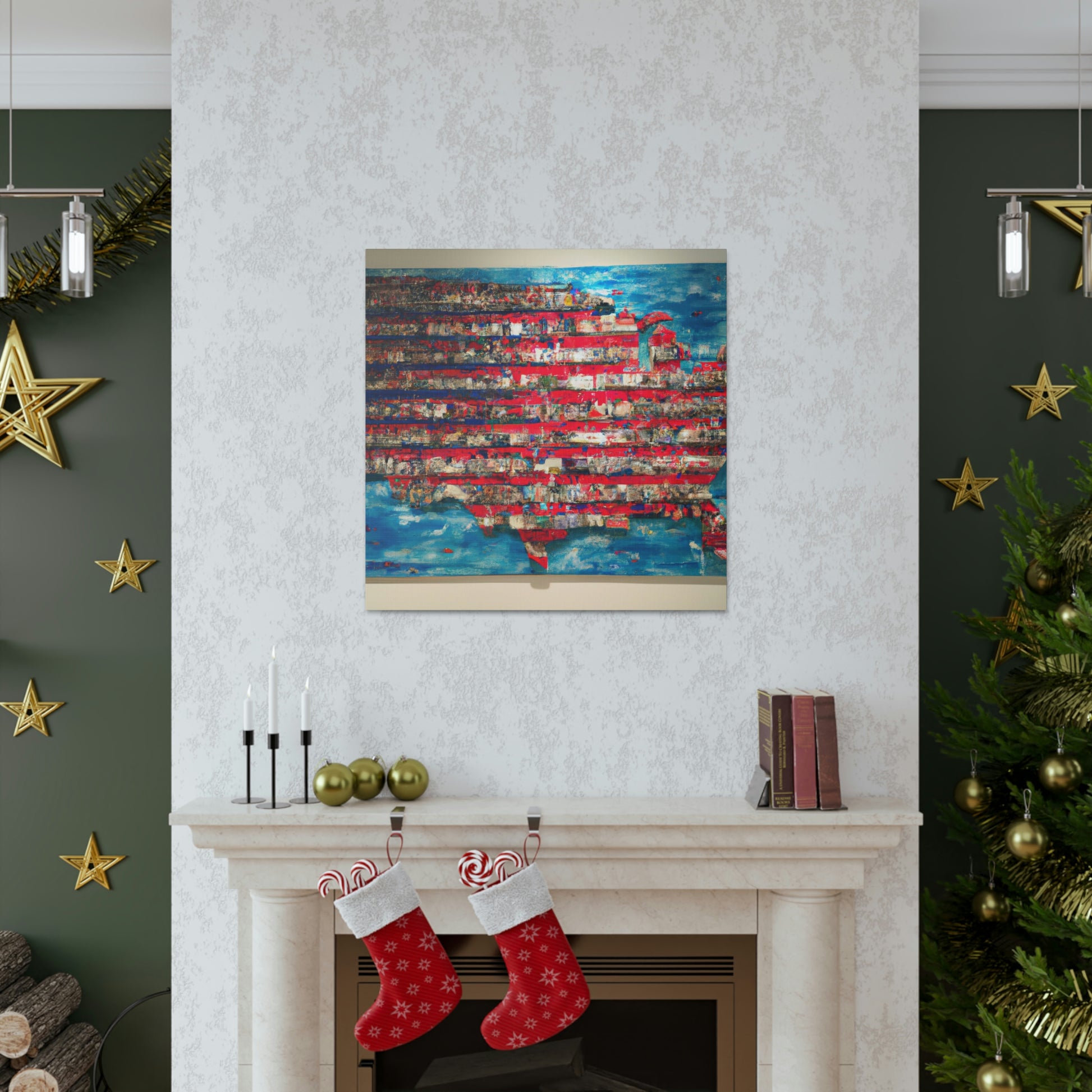 This incredible canvas of modern art shows the panoramic view of America in vibrant colors! The colors have been expertly chosen to create an eye catching and visually stirring artistic piece. Display this beautiful canvas to give your home a unique and stunning touch. #modernart #americana #contemporaryart #canvasart #homedecor #style #statementpiece #statementart #artwork #interiordesign #wallart